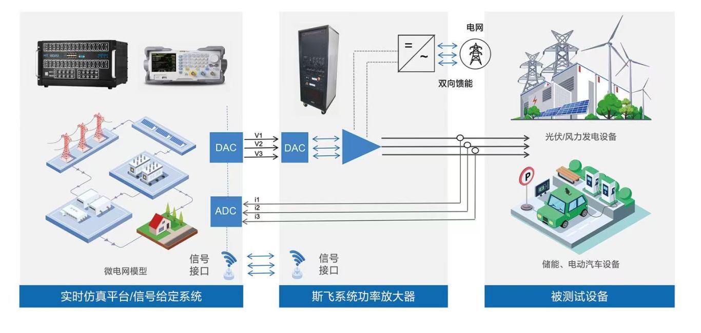 "本次实验成功实现了半实物仿真器与实物功放逆变器的深度融合测试。通过创新的功率倍乘方法,我们完整模拟了新能源逆变器接入对局部电网运行的影响,这项突破为微电网稳定性研究提供了重要的技术支撑。"